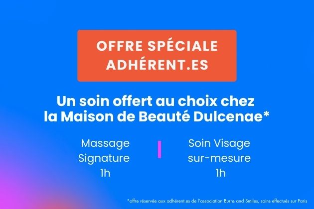 Burns and Smiles est une association de brûlés née de la rencontre d’une chirurgienne Françoise Firmin et son patient grand brûlé Laurent Gaudens à qui elle a suggéré de raconter son histoire pour aider les brûlés à trouver le chemin de la résilience.
